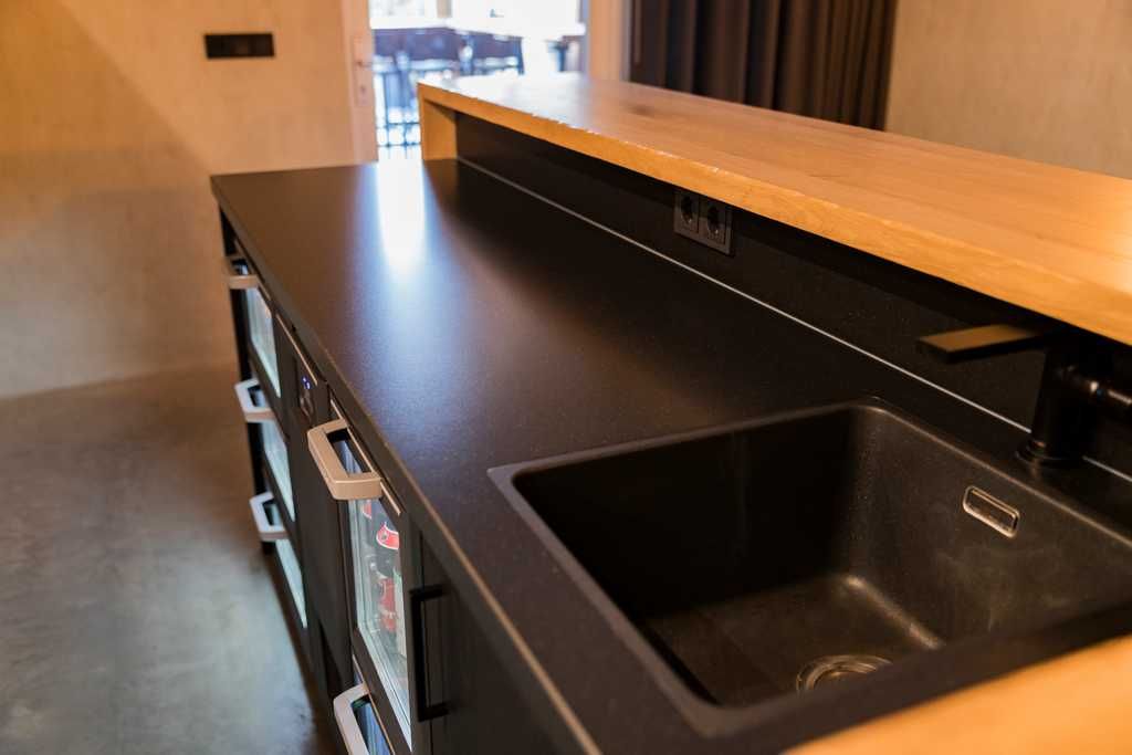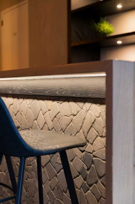 Het samenspel van materialen en kleuren zorgt voor een harmonieus en uitnodigend geheel. Het resultaat is een stijlvolle bar waarin vakmanschap, sfeer en beleving samenkomen. Een echte blikvanger in de ruimte.