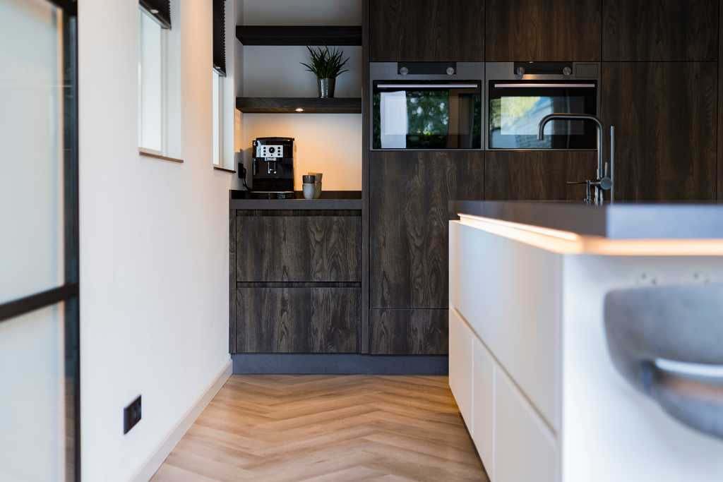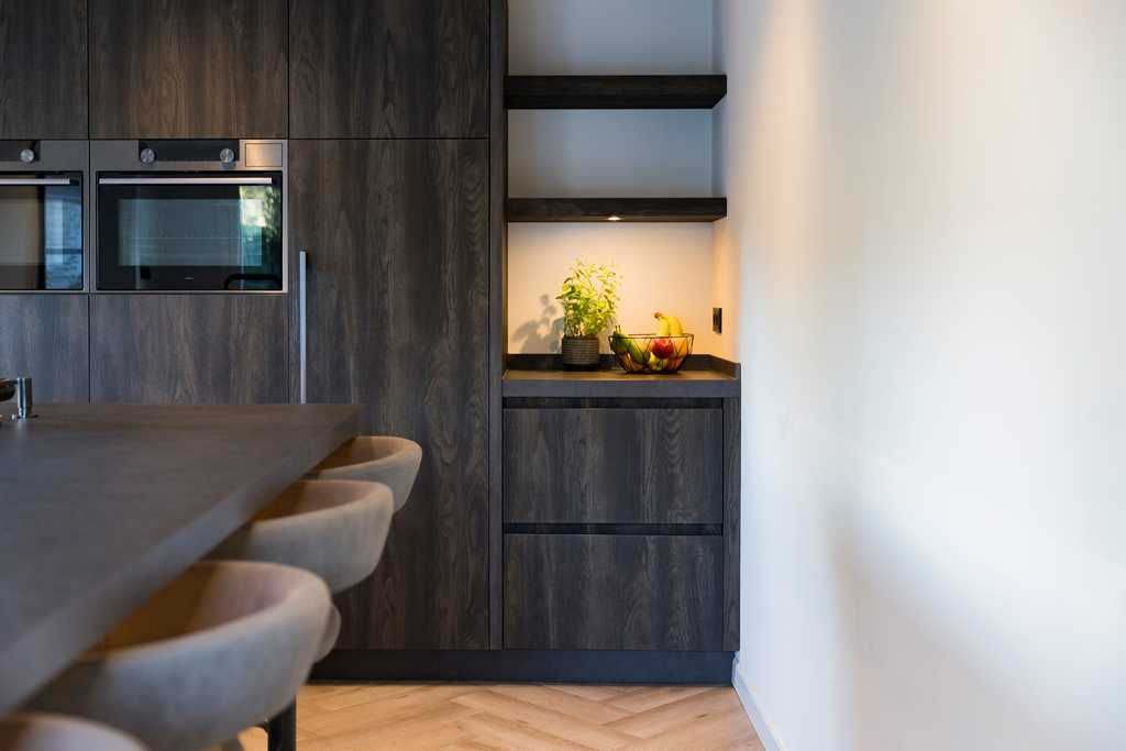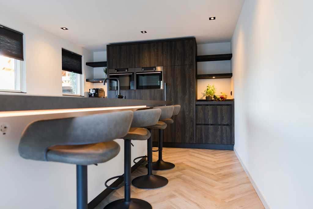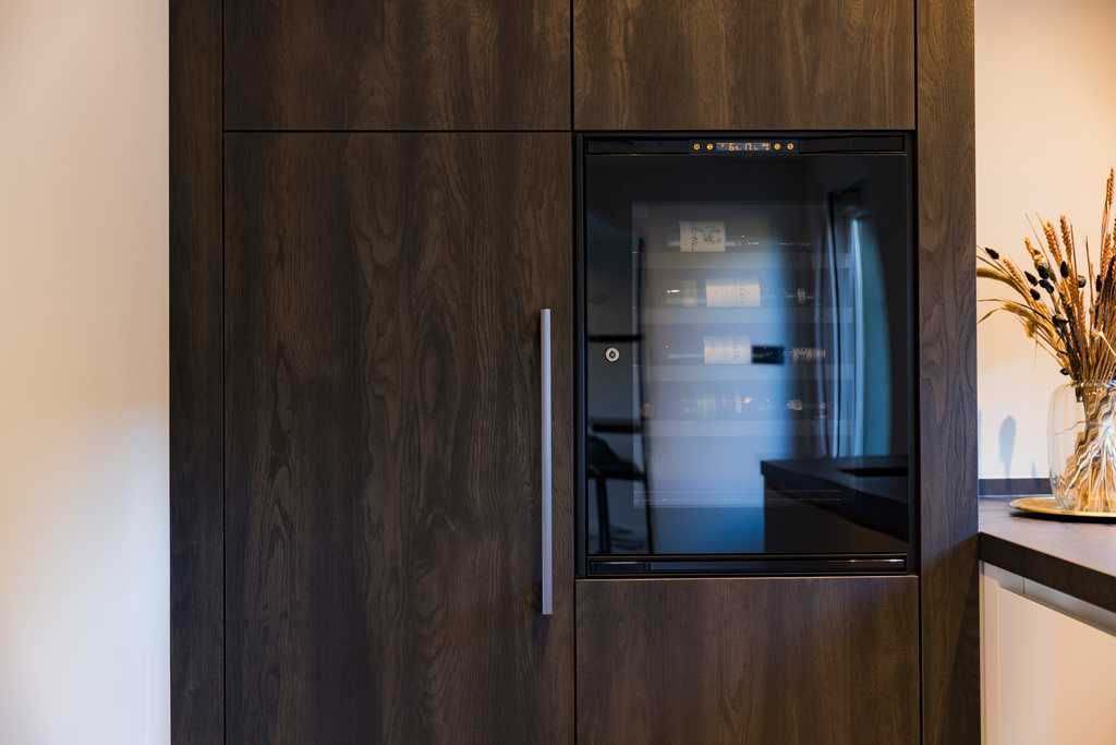 Dankzij soft-close laden en deuren, slimme opbergoplossingen, geïntegreerde verlichting en een doordachte indeling met onder andere een vriezer en wijnkoeler, is een praktische en comfortabele ruimte gecreëerd.
