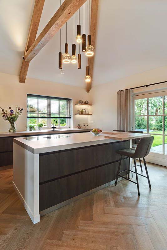 Voor deze keuken in Gemert heeft Van Hoof Interieurbouw een hoogwaardige maatwerkkeuken gerealiseerd met een krachtige en moderne uitstraling. Een keuken waarin elk detail zorgvuldig is uitgewerkt en waarin luxe en functionaliteit centraal staan.