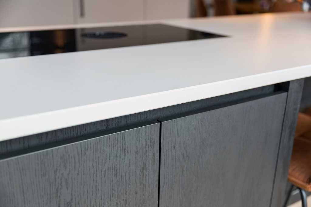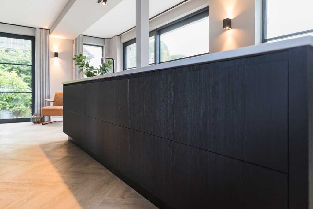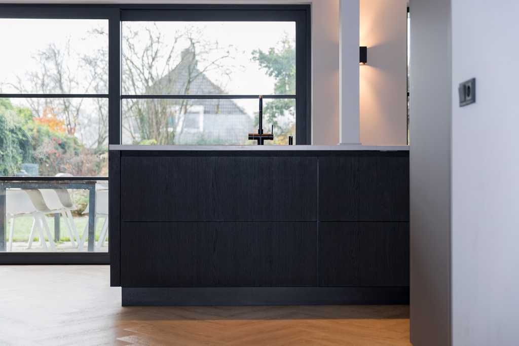 Soft-close laden en deuren, slimme opbergoplossingen en een naadloos geïntegreerde loopdeur in de kastenwand maken deze keuken tot een harmonieus geheel. Hier komen design, comfort en gebruiksgemak perfect samen, waardoor de keuken niet alleen een functionele ruimte is, maar ook een echte blikvanger in het interieur.