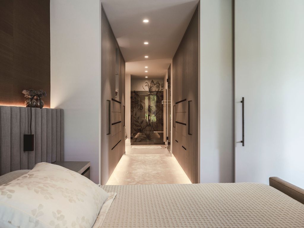 En de inloopkast? Die is een echte droomruimte, waar functionaliteit en design hand in hand gaan. Het resultaat is een harmonieus en stijlvol geheel – een villa waar elk detail klopt en waarin maatwerk en beleving perfect samenkomen.
